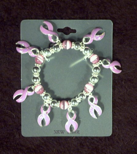 Jewel Bracelet with 8 pink Breast Cancer Awareness Ribbons