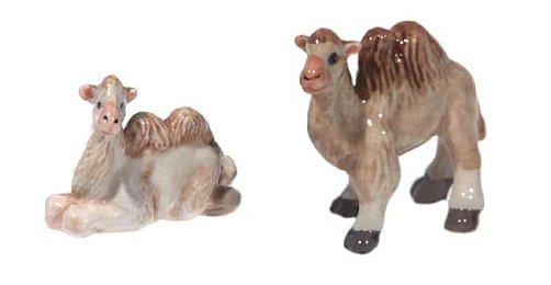 Porcelain Bactrian Camel Set of 2 Miniature Figurines