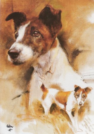 "Cokie" Single Blank Notecard by Artist: Melanie Stoltz Brown - Her original watercolor artwork is now being offered as notecards & prints. (To view all of her artwork, click here) Cokie, a Jack Russell Terrier. Item #: MSB19 Price: $2.00 |