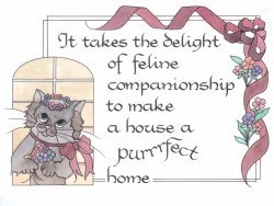 Feline Companionship Single Blank Notecard With Envelope Outside Message: It takes the delight of feline companionship to make a house a purrrfect home Size: 5" x 6¾" Item #: 95BN14209 Reg. Price: $0.95 ea Sale Price: $0.50 ea Quantity Available: 12 |