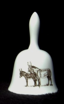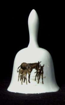| Porcelain Bell Original Donkey Family Available in 2 Sizes Medium: 4" high Large: 5" high: Item #: 1800B Price: $9.95 Med Price: $11.95 Lg WXICOF Exclusive! |