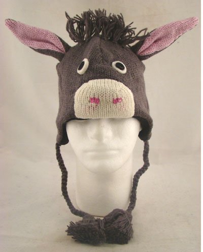This hat also has earflaps with dangling braids and pom poms sewn on