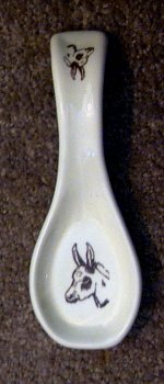 Porcelain Spoon Rest Spotted Baby Donkey Head Size: 8" Item #: 1400SR Price: $8.95 WXICOF Exclusive! |