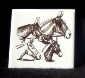 Porcelain 4" Tile 4 Mule Heads Size: 4" Square Item #: 1500T4 Price: $5.95 WXICOF Exclusive! |