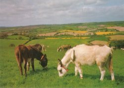 Front of postcard reads: Life At The Donkey Sanctuary Is Great!
