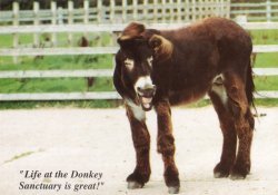 All are pictures of donkeys at the Donkey Sanctuary in England.