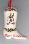 Mule Colt Standing Flat Boot Shaped Christmas Ornament Size: 2 ½" Item #: 1320FBCO Price: $3.95 WXICOF Exclusive! |