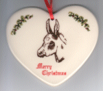 Young Spotted Donkey Head Flat Heart Shaped Christmas Ornament Size: 3 ½" Item #: 1400FHCO Price: $4.95 WXICOF Exclusive! |