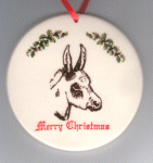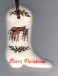 Original Donkey Family Flat Boot Shaped Christmas Ornament Size: 2 ½" Item #: 1800FBCO Price: $3.95 |