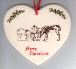 Mule Colt Grazing Flat Heart Shaped Christmas Ornament Size: 3 ½" Item #: 1300FHCO Price: $4.95 WXICOF Exclusive! |