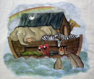 Noah's Ark T-Shirt Noah's Ark under a rainbow with pairs of: giraffe, elephant, zebra, rabbit, raccoon, flamingo, alligator, pig, and whale. 100% heavy duty cotton Color: Lt. Cream Available as Long Sleeve or Short Sleeve Adult Sizes: L, XL Item #: CWNA Price: $25.00 Short Sleeve Price: $28.00 Long Sleeve |