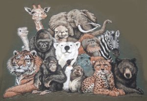 Zoo Animals T-Shirt Giraffe, elephant, ostrich, gorilla, chimp, tiger, camel, polar bear, penguin, oragutan, walrus, sea lion, cheetah, black bear 100% cotton Color: Green Adult Sizes: S, M, L, XL Item #: HQZA Price: $16.00 |