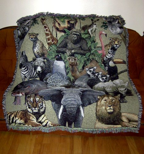"Zoo Design" Afghan Tapestry Throw Fringed edges all the way around Size: 48" x 60" 100% cotton Machine Washable Made in the U.S.A. Item #: MSD9949TU4 Price: $59.95 |