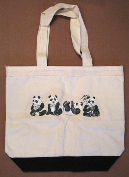 "Pandas" Tote Bag Made of heavy duty canvas Bag Size: 12" x 18" x 6" Strap Size: 24" Item #: HQ4PTB Price: $15.50 |