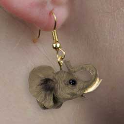 Elephant Head Earrings Pierced, Dangle Style Beautifully hand painted and made of cold cast stone resin with Hypo-allergenic gold-tone hooks. Size: 1/2" Item #: AHEH16 Price: $9.95 |