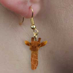 Giraffe Head Earrings Pierced, Dangle Style Beautifully hand painted and made of cold cast stone resin with Hypo-allergenic gold-tone hooks. Size: 1/2" Item #: AHEH20 Price: $9.95 |