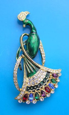 Peacock Pin, Tail-Down (Green)