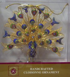 Peacock Christmas Ornament Handcrafted Cloisonne Ornament Size: 6" Item #: D527T1279TB Price: $30.00 |