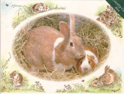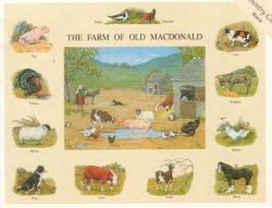 The Farm Of Old MacDonald Blank Note Card Pictured Around Farmyard Scene: Duck, Chicken, Cat, Donkey, Goose, Horse, Goat, Cow, Dog, Sheep, Turkey, Pig With Envelope Size: 6" x 8" Item #: CC531 Price: $2.00