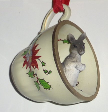 Kangaroo "Holiday Teacup" Ornament - Red