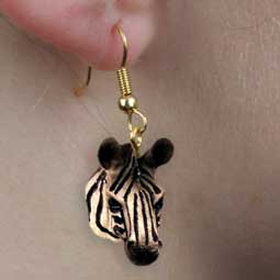 Zebra Head Earrings Pierced, Dangle Style Beautifully hand painted and made of cold cast stone resin with Hypo-allergenic gold-tone hooks. Size: 1/2" Item #: AHEH26 Price: $9.95 |