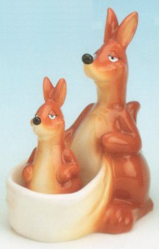 | Removable Kangaroo and Joey Salt & Pepper Shaker Set The joey "hops" out of the pouch for use. Great for the cook or the collector! Size: 5" high Item #: DC71011 Price: $7.95 |